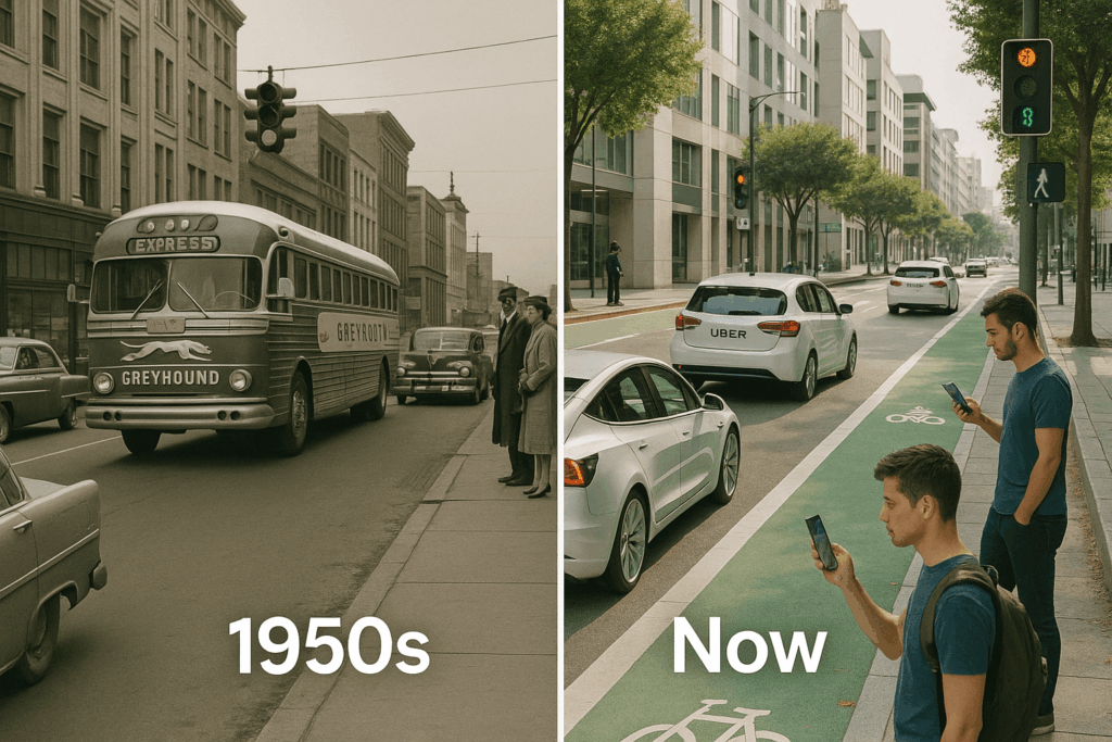 Cities that demolished their rail systems are spending billions to rebuild them. Young adults are choosing walkable neighborhoods over sprawling suburbs. Rideshare, scooters, and bike lanes are transforming urban mobility.